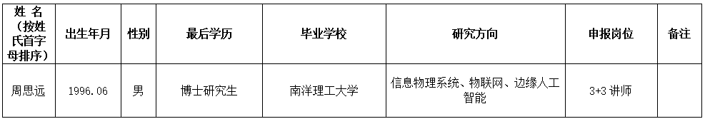 经学院公开选拔,人才引进小组教学科研考核及教授委员会评议,学院党政联席会研究决定一致同意周思远博士为黄漫 新进教师拟聘3+3讲师人选,现予以公示,公示期限为7天,公示时间从2026年1月12日至2026年1月18日。如有异议请在公示期满前向学院办公室反馈。