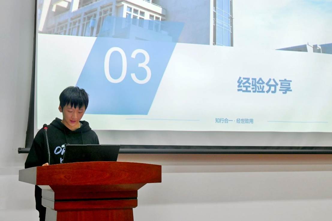 计科2303班徐炜轩和软工2304班汪俊锋作为优秀学习委员代表,分享了他们在过去一年的工作经验,例如根据实际情况灵活调整活动时间地点、活动开展力求多样化、与其他班级、组织联合开展活动、充分运用学校知新馆资源等,希望能为其他班级学习委员开展日常工作带来帮助与启发。