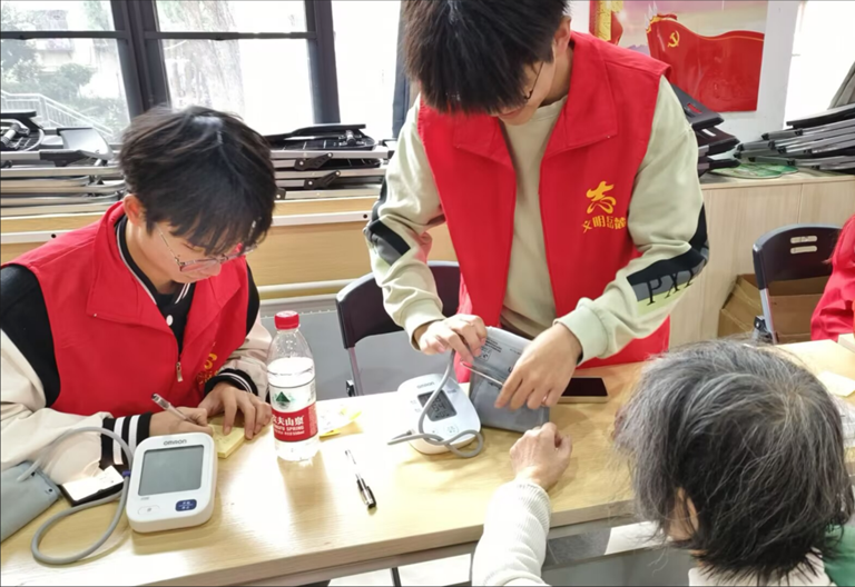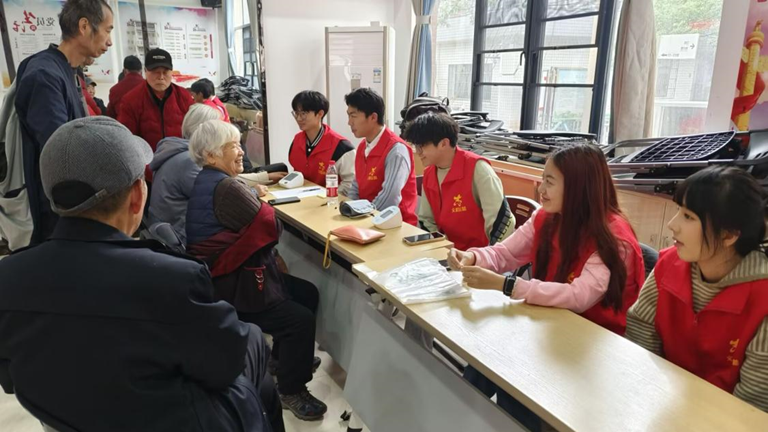 南校区云麓园社区党群活动中心顺利举行了百人百项志愿服务工程活动。该活动旨在通过现场量血压心率等方式,并结合晓康e家小程序,让老年人更好地对自身健康做到自查,更好地了解自己的身体情况。同时本次志愿活动也通过志愿者对老年人的聊天与关怀,给老年人的生活增添了一丝乐趣。