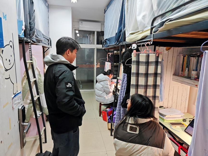 2024级本科生辅导员刘家忱、达泽文、赵赫严格践行“一线规则”,深入学生宿舍,对宿舍内是否存放或使用大功率违章电器和易燃易爆物品,是否存在私拉电线、给电动车电池充电、有离开房间时不关闭电源、长明灯等不安全用电现象,是否有占用、堵塞消防通道现象等进行细致检查,督促引导学生及时整改安全问题,切实纵深推进安全教育工作。