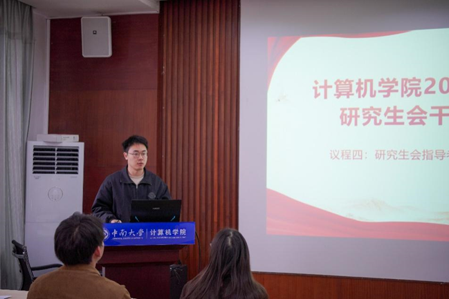 最后,指导老师刘烁烁进行总结发言。他首先对研究生会本学期工作给予充分肯定与高度赞赏,着重指出“先进研究生会”荣誉的背后凝聚着每一位研会成员的辛勤付出。他提出,若要将研究生会真正打造成 “找得到,信得过,离不开” 的标杆组织,仍需从三方面持续发力:其一,强化思想政治学习,认真学习贯彻习近平新时代中国特色社会主义思想,不断提升理论素养;其二,提高个人政治站位,以严谨态度对待每一项任务,确保做事精益求精;其三,恪尽部门岗位职责,进一步强化内部沟通联系,形成工作合力。与此同时,他还对研究生会未来发展寄予殷切期望,并给出建设性意见,强调研究生会在推动学院研究生工作进程中扮演关键角色,期望其持续强化内部建设,全方位提升成员专业素养与工作能力。