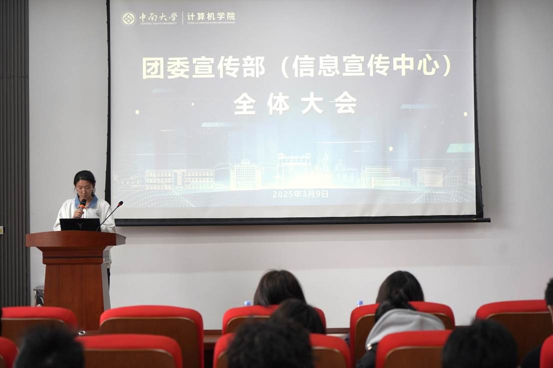 团委宣传部(信息宣传中心)2024-2025学年春季学期全体大会在潇湘校区信息楼535举行,学院党委副书记王新辉,宣传部指导老师赵赫、刘义平及宣传部全体成员参会。大会由学生团委副书记杨欣然主持,聚焦宣传队伍专业化建设,通过总结复盘与规划部署,推动学院宣传工作纵深发展。