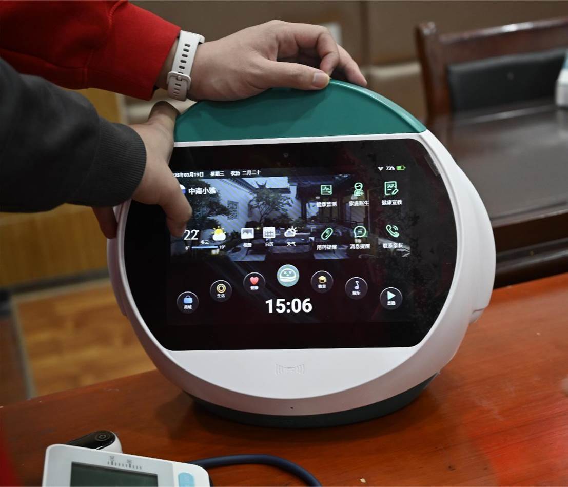 活动伊始,小雅团队为老人们详细介绍大数据研究院师生自主研发的健康机器人“小雅”。从精准测量血压、血氧、血糖等参数,实时监控、守护老人的健康指标,到指导老人学习古筝、为老人播放音乐、戏剧,小雅强大的功能与便捷的操作,迅速吸引了老人的目光。老人们都迫不及待想与小雅进一步互动,现场气氛热烈非凡。