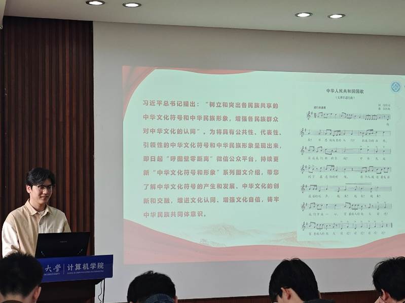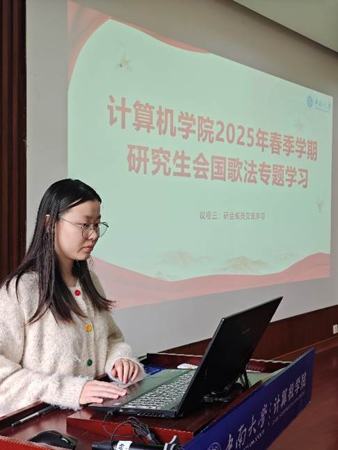 团委学生会、研究生会计算机楼313会议室举行了以国歌法为主题的专题学习会议。本次会议包括奏唱国歌、学习国歌法、讨论交流三个环节,旨在进一步增强我院团委学生会、研究生会成员对国歌法的全面了解和深刻认识,提升对国歌法的尊重与敬畏之心,同时加强爱国主义情怀,激发爱国热情,增强民族自豪感和责任感,共同为弘扬爱国主义精神、传承红色基因贡献自己的力量。团委学生会、研究生会成员参加了本次会议。
