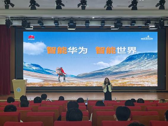 华为招聘经理赵小桃先带领同学们深入了解华为的企业精神,以及华为在5G通信、人工智能等领域的核心技术优势。随后,她邀请华为员工潘仲傅(软件工程19届毕业生)上台,从校友视角分享入职后的成长经历:他详细介绍了入职以来参与的重点项目、日常工作内容,以及在导师指导与团队协作中获得的技术提升和职业素养成长,真实的经历让同学们快速产生共鸣,对华为的工作模式与职业发展路径有了更直观的认知。