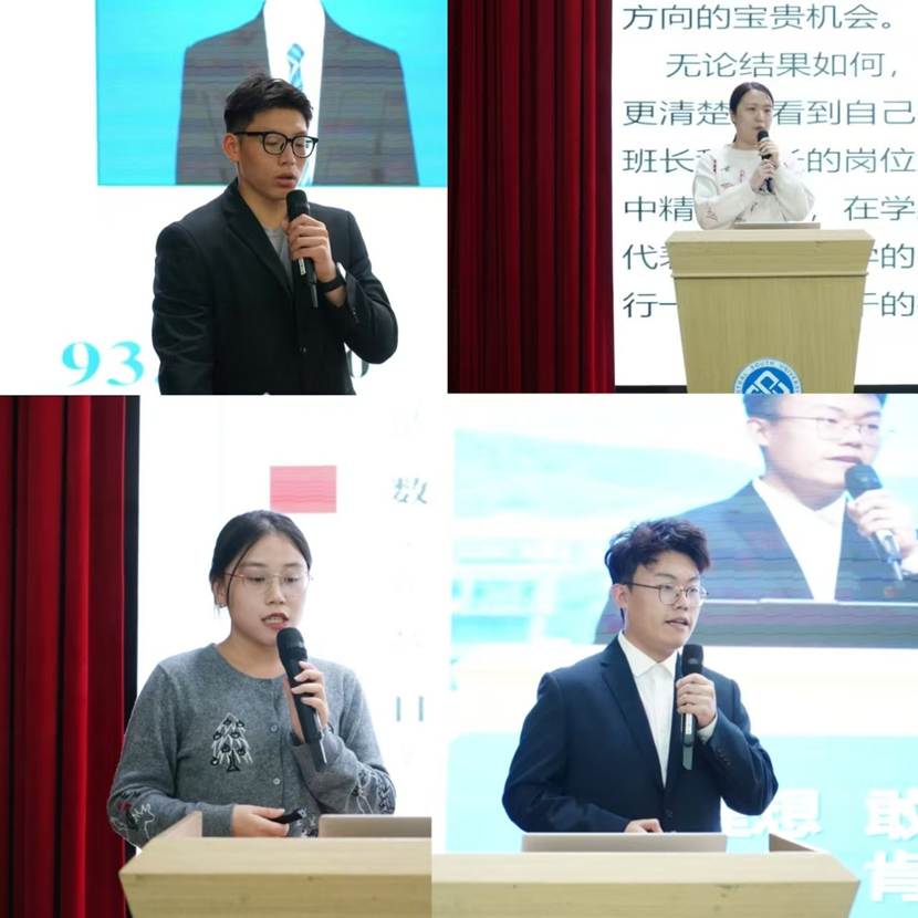 接下来进行的是优秀学生干部答辩。学生干部王敬博、刘昊等同学在答辩中展现了自己学生工作方面取得的进步与卓越成果,同时也展示了个人情况与优秀成绩,体现了我院学生干部对服务同学、全面发展品质的价值追求。
