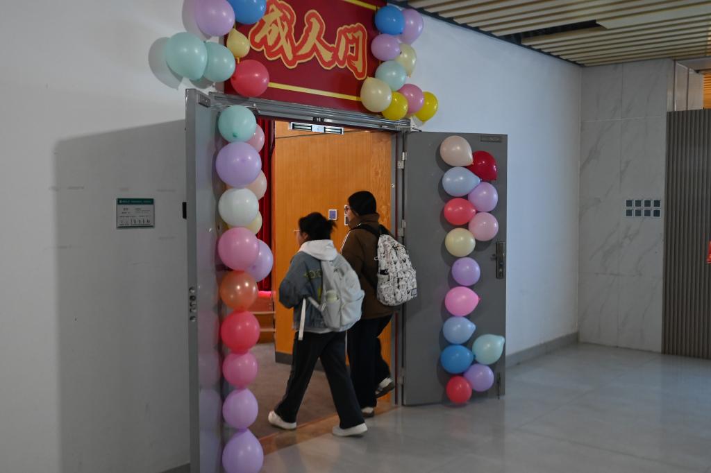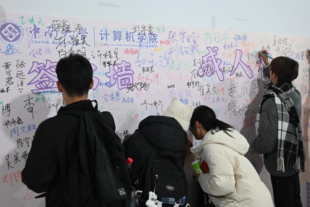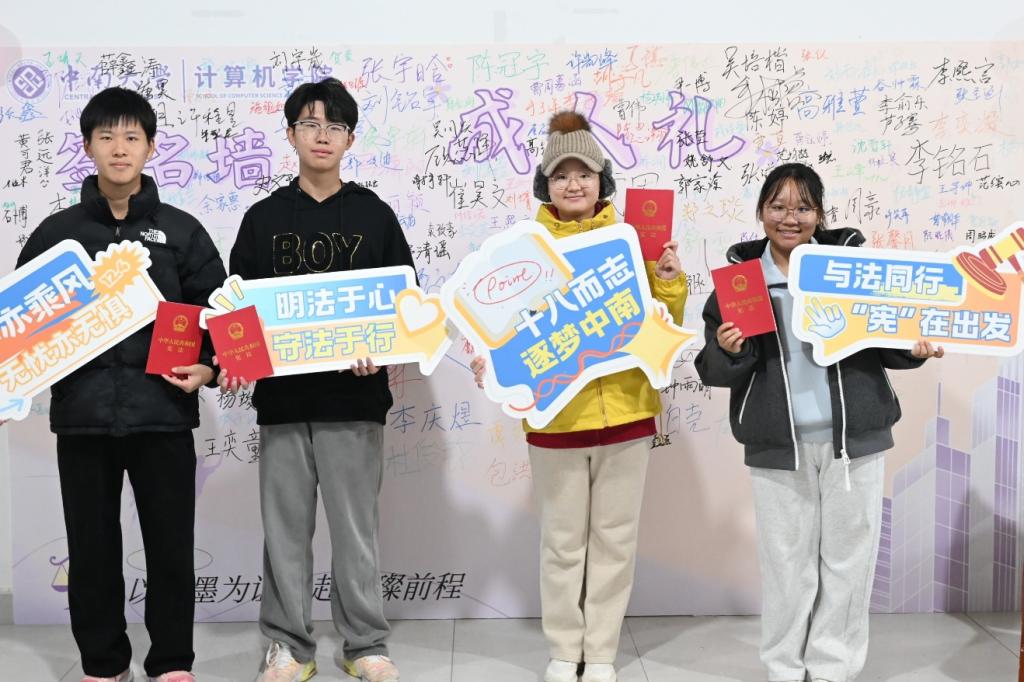 仪式开始前,同学们在工作人员的引导下,于专属的“成人礼签名墙”上郑重签下自己的姓名,随后稳步走过象征着成年的“成人门”,并在门前领取《中华人民共和国宪法》单行本,以此为起点,有序步入会场。