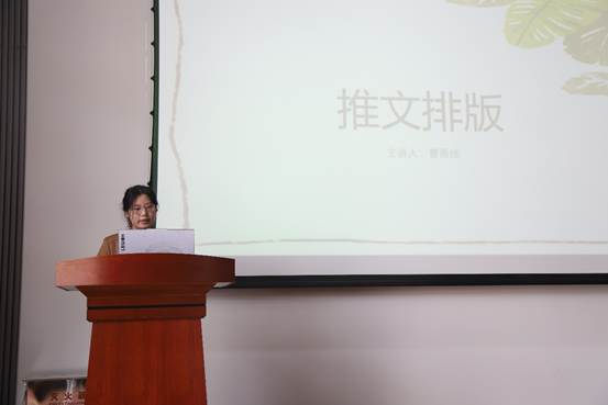 学院信息宣传专干赵赫老师上台发言。她围绕宣传工作的重要意义、职责使命与工作要求展开分享,鼓励全体宣传干事坚守初心、认真履职,以敏锐的视角、扎实的笔触记录学院发展点滴,用优质内容展现黄漫