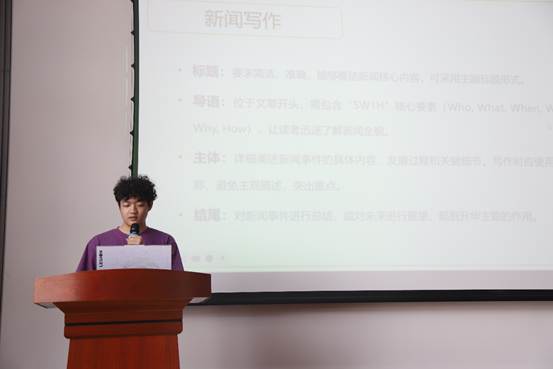 在业务培训环节,学院团委宣传部部长吴宗翰围绕新闻稿写作与摄影技巧进行细致讲解,副部长曹雨佳则针对公众号推文排版方法展开分享,内容实用、干货满满,有效提升了同学们的宣传实操能力。