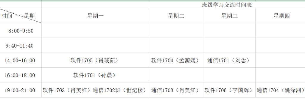 软件工程17级同学活动参与积极性有待提高;18级同学学习交流活动情况良好,活动期间认真学习、积极讨论。1702、1703、1704、1805四个班级本周未进行学习交流活动。