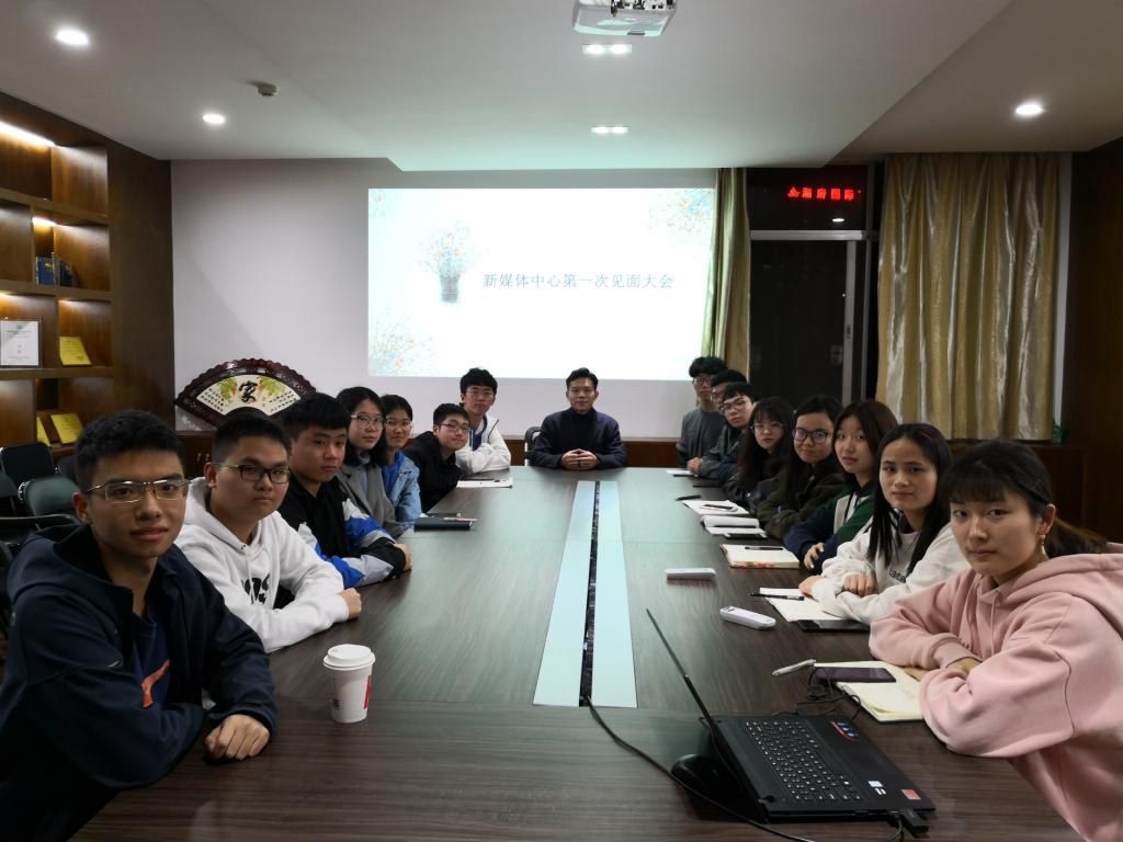 新学期信宣中心新媒体部第一次全体会议暨培训大会在第二综合楼418会议室召开。李诚老师及全体新媒体部部员出席会议。会议就新学期相关学生工作进行部署安排,以及对部员进行第一次培训。
