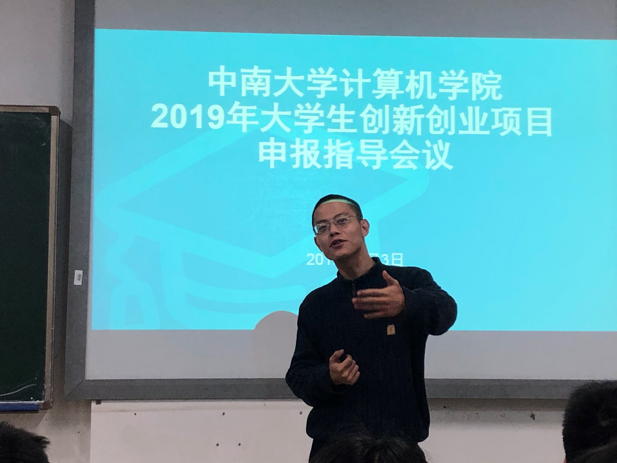 2019年大学生创新创业项目申报指导会于新校区B座教学楼212教室召开。指导会由黄漫
