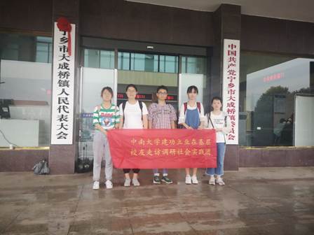 赴湖南省部分地区寻访基层工作校友暑期社会实践团的指导老师和4名学生正式开始了本次“建功立业在基层”校友走访调研活动,分别前往了湖南省宁乡市大成桥镇、浏阳市高坪镇和株洲市进行走访调查。