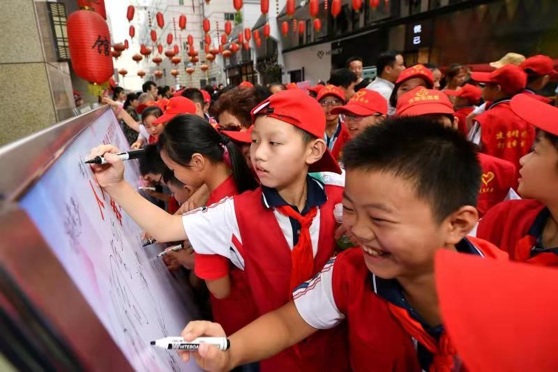 8月19日,团队首先来到了芙蓉区走马楼社区,作为志愿者参与组织“分类一小步,文明一大步”垃圾分类知识普及活动。社区群众们跟随队长宣誓,在展板前留下对美好、清洁未来的无限期待。