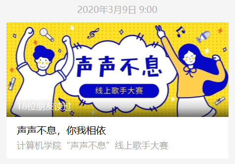 学生会面向全体学子开展了“声声不息”线上歌手大赛,通过“全民K歌”平台进行演唱和投票。