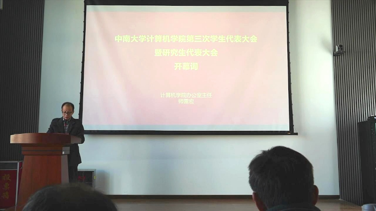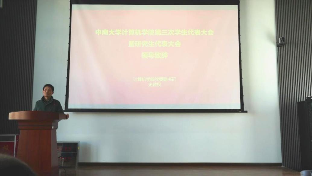 第三次学生代表大会暨研究生代表大会在信息楼五楼报告厅举行。院党委副书记史建权,院党委委员、大数据研究院陈先来副院长,院学生工作办公室主任师雷宏,院各级辅导员以及来自院团学会、研究生会代表干部等嘉宾出席大会。