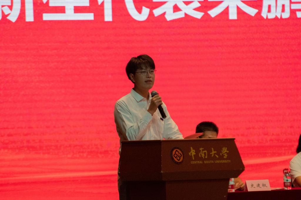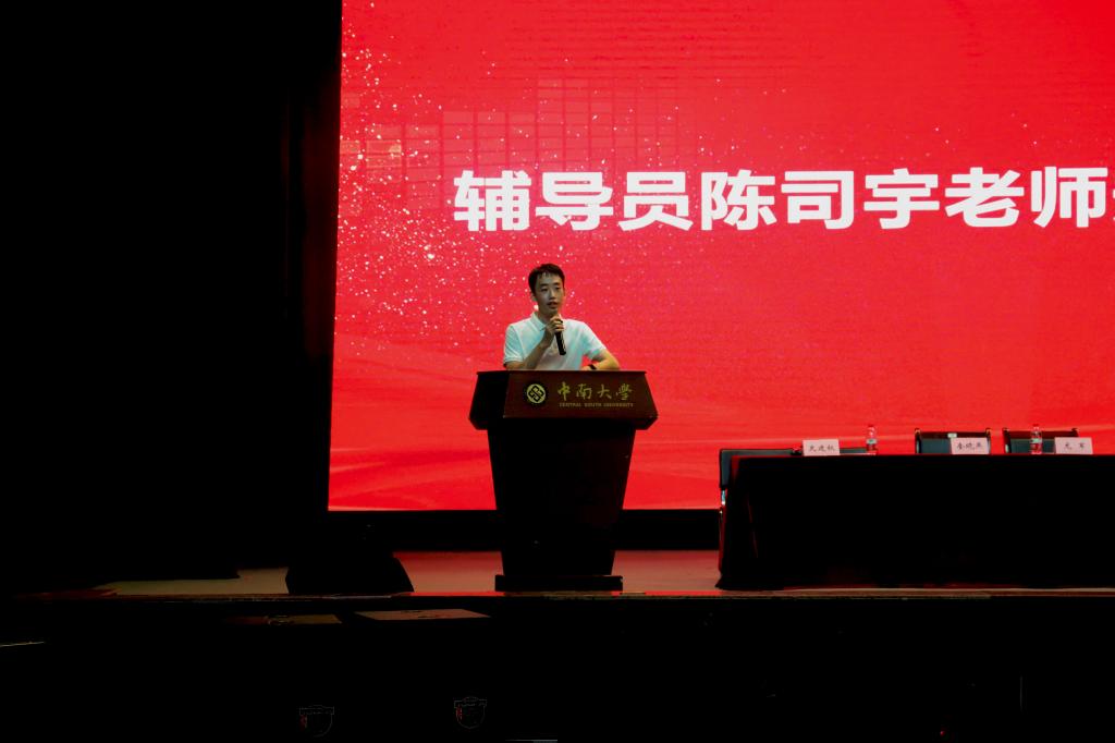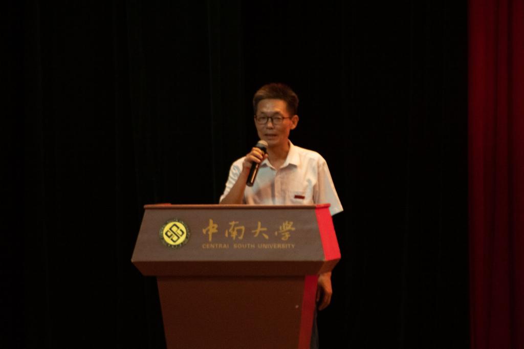 ,向新生的到来表示了最热烈的欢迎,向一路培养他们的父母和老师们表示了衷心的感谢。他希望同学们都要做一个富于追求的中南人,一个乐于拼搏的中南人,一个有家国情怀的中南人,向善求真,唯美有容。在不断成长中,成就对国家有贡献、对社会有价值的人生。为此,他给同学们提出了四点建议:一是立大志,树立高远的志向和目标;二是明大德,扣好人生的第一粒扣子;三是成大才,锤炼自身过硬本领;四是担大任,不畏人生的挫折与苦难。
