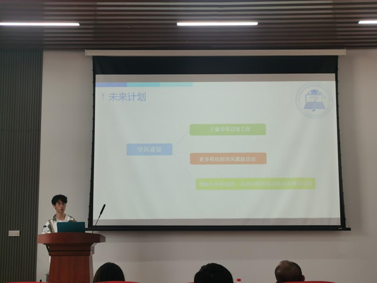 接开场之后,大会进入第一项议程——指导老师王睿卿老师和宋晓萌老师致辞。首先,王睿卿老师以”需要做什么“和”能够获得什么“为切入点全面介绍了学服,并提出对学服新一年的工作期望,鼓励大家勇于创新,打造更好的学服。随后,宋晓萌老师建议大家合理使用学服的资源,并与大家共同努力,共同进步,进一步为学院的学服建设做贡献。