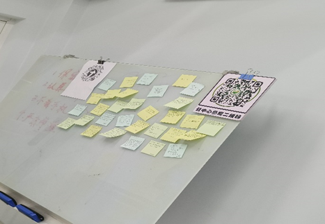 最后,辅导员何星霖老师让同学们在便利贴上写下对于四年后自己的展望,同时邀请全体同学合影留念。这不仅是一个让同学们思考大学生活的好机会,还于无形之中帮助同学们树立长远目标,给予同学们动力与鼓励,激励同学们为之付出行动,不愧自己,青春无悔。