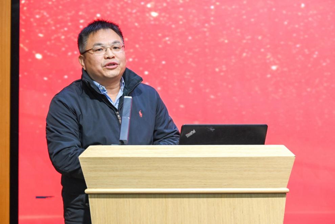 大会第二项,计算机科学系主任王斌教授发言。王斌老师针对大二阶段进行了学习和生活体会的分享。大二正是进入专业学习的关键阶段,王斌老师指出现在国家对高新技术人才的需求已经发生了改变,同学们自应提升自己的综合能力。他强调,动手能力永远是重中之重,同学们要在课程中做重点突破,不断提升自己的动手实操能力;广泛地阅读是培养自己思维的最佳方法,用专业领域知识深化自己的研究学习,非专业领域知识拓宽自己的思维广度,将自身培养成更具综合性的人才;加强同学互助,在差异性团体合作中走的更远。最后,王斌教授祝愿同学们能够在以后的学习道路上越走越远。