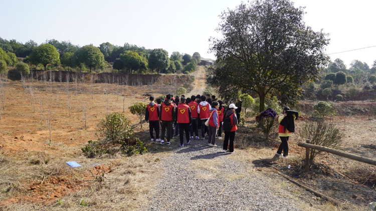 大巴车,前往长沙市黄兴镇正冲义务植树基地。绕过崎岖的山路,穿越黄土与绿树,志愿者们徒步抵达了此行目的地。为消解旅途疲劳,工作人员安排志愿者们在原地稍作休息。基地不远处是前人栽下的树林,满目生机让人心旷神怡;脚下是被提前整好等待种植的土地,仿佛给予着志愿者们斗志与力量。