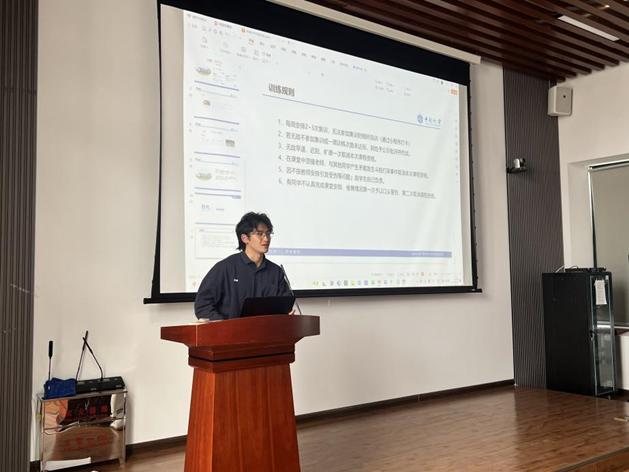 最后,袁熠老师向参与辅导班的同学们介绍了训练的具体内容,涵盖了热身运动、力量训练、动作规范等多个方面,以全面提升同学们的体能和技能。除此之外他强调了自训与集训的训练方式,旨在更加弹性化地利用时间,让每一位同学都能够根据自己的情况进行合理安排。