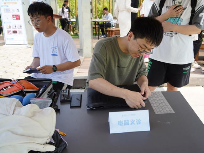 青志协电维部成员为同学们提供电脑义诊服务,发挥个人特长,为师生带来便利。