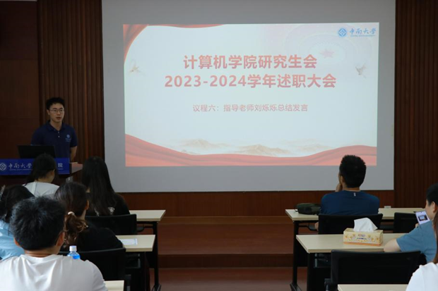 研究生会年度述职大会在计算机楼313开展。黄漫
