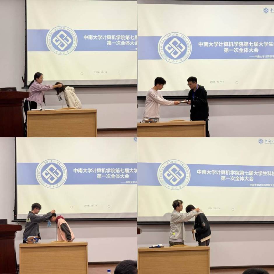 第七届大学生科协全体成员以及苹果实验室、华为智能基座社团、小米工作室和游戏开发实验室的相关负责人,大会主持人由管理部干事张津涛担任。