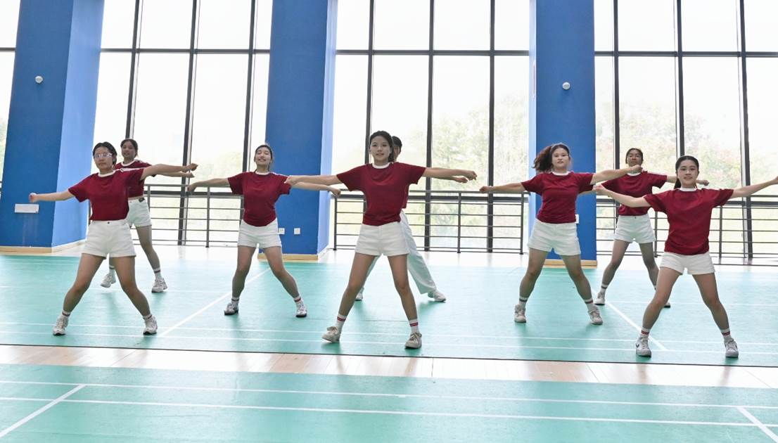 接下来是健美操比赛,选手们齐步入场,精神利落,伴着一声声动令,选手们的动作刚柔并济,时而如狂风中的劲竹,挺拔有力,时而如春日里的柳枝,婀娜多姿,一招一式都闪耀着自信的光芒,一动一息都展现着体育的魅力。