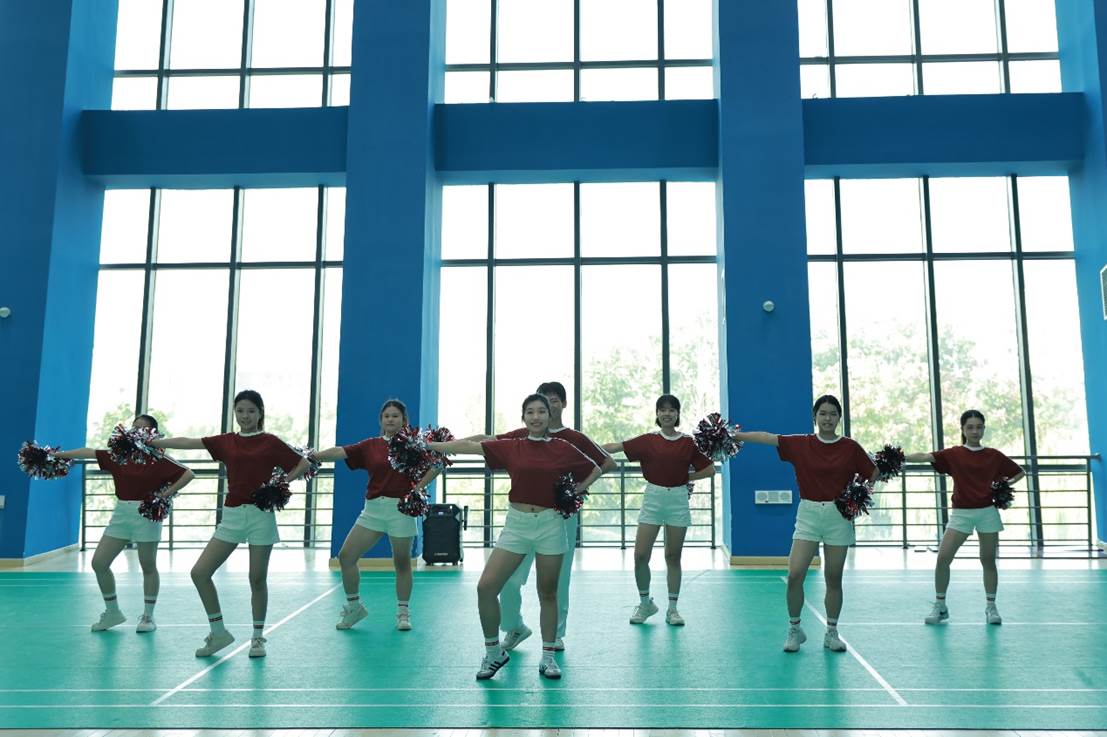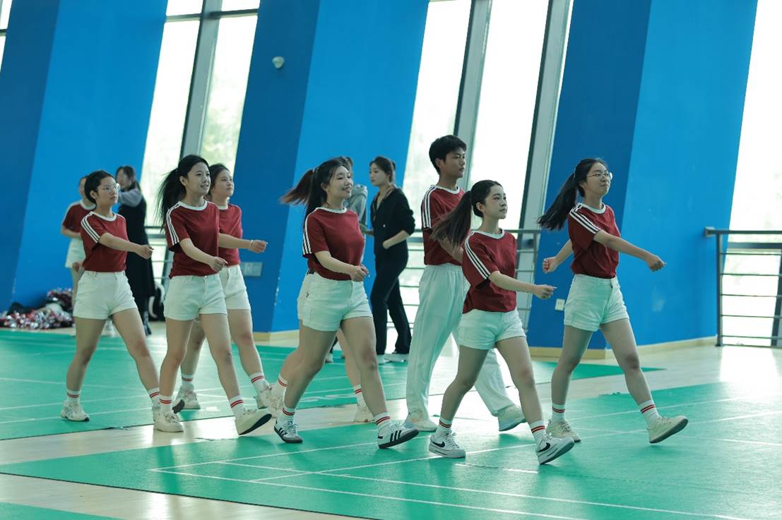 比赛的第一阶段为花球拉拉操比赛,选手们身着统一的服装,步伐整齐有力,斗志昂扬地步入赛场。随着音乐的节奏,队形变换,花球翻飞,选手们精准的动作和自信的眼神,充分展现了我院学子们的青春活力和团队精神。
