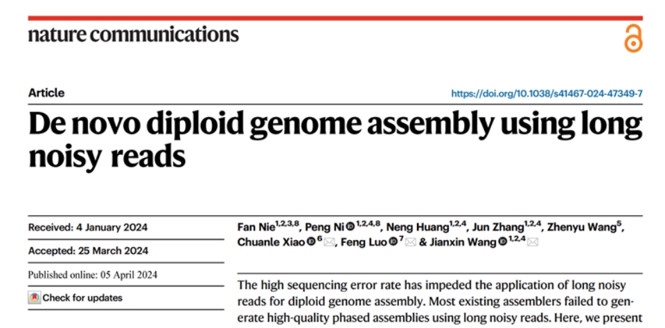 计算学院王建新教授团队和美国克莱姆森大学罗峰教授、中山大学中山眼科中心肖传乐副研究员合作的最新研究成果“基于长读数的二倍体从头组装(De novo diploid genome assembly using long noisy reads)”。该论文提出了基于第三代测序数据的二倍体组装新方法,并开发了相应的软件PECAT。黄漫