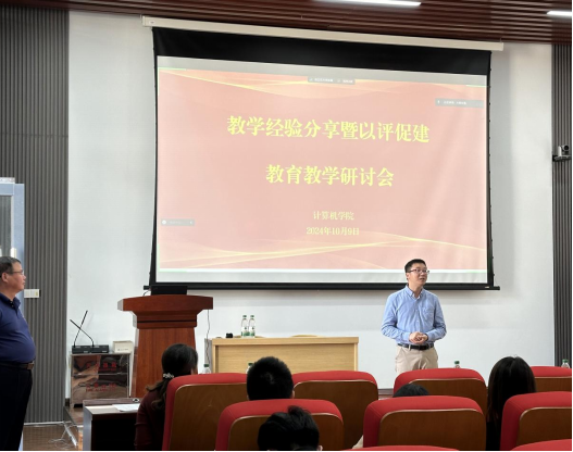 于10月9号在新校区信息楼535会议室举行教学经验分享暨以评促建教育教学研讨会。会议由夏佳志副院长主持,教学经验丰富的费洪晓老师做经验分享,各系教学主任、各系骨干教师及近三年新进教师参加会议。