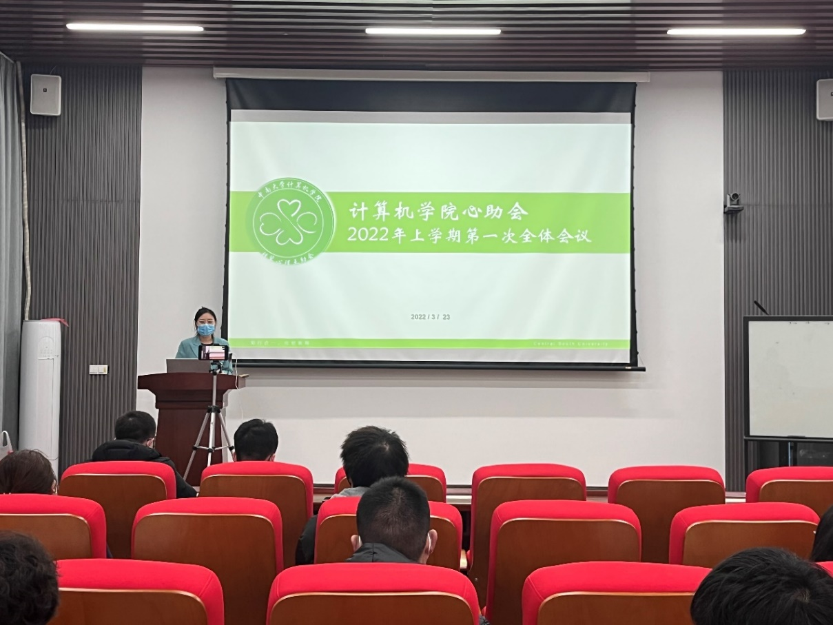 朋辈心理互助会在信息楼535召开本学期第一次全体会议。出席此次会议的有心助会负责老师宋晓萌、辅导员许宁、迟旭,以及心助会全体成员。本次会议旨在介绍本学期工作安排和探讨心助会发展方向。