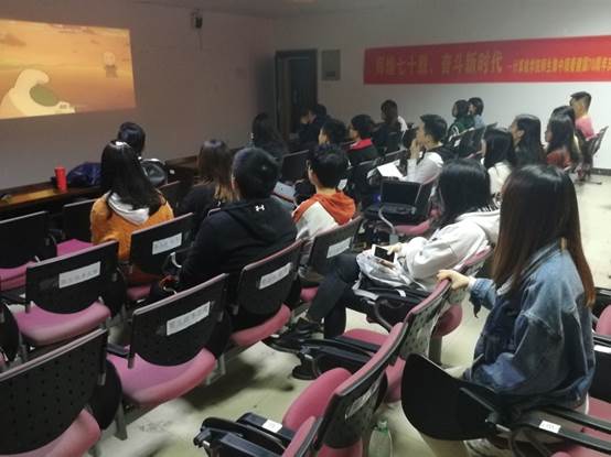 活动由宋晓萌同学主持,宋晓萌同学为大家简单的介绍了一下这部影片的大致内容和主题思想,并且和大家分享了自己对这部影片的感受,以及选择这部影片作为爱国教育观影活动的原因,她称赞这部影片通过动画的形式,幽默的为大家展现了我们国家不同时代的发展历程,为我们展现了一个又一个的英雄事迹和时代楷模,让我们对新中国成立以来的艰辛历程有了一个很好的了解,也让我们懂得今天的成就来之不易,我们要向各位前辈学习,要努力学习,不断进步,掌握专业技术和知识,为我们国家的发展贡献出自己的一点力量。我们作为党员,更要起到模范带头作用,要时刻为国家为人民的利益着想,要不断提高爱国意识,更好的为祖国贡献自己的一点力量。