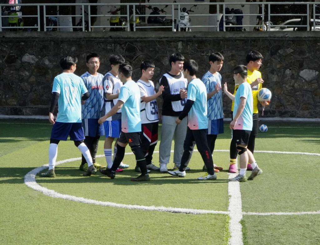 上半场转瞬即逝,转眼到了女生展示的时刻。只见女生们轻快灵动,辗转于障碍物之间,完美地避开了障碍。不过一会的时间,胜负也已决出。娴熟的技巧和充足的耐心被展现得淋漓尽致,足球女将们的飒爽英姿赢得了众多男生的鼓掌欢呼。下半场也紧接着开始了。在20分钟的你追我赶,接力对抗后,一场难解难分的比赛告一段落。双方队员在互致敬意后走下了赛场。