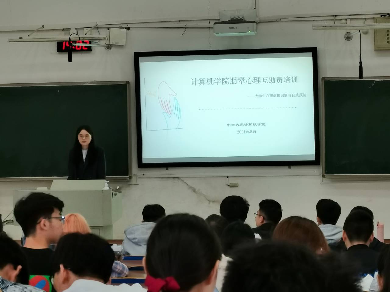 心助会心理专干廖璠艺老师,于新校区D座104教室及铁道校区二综411教室,开展了主题为“大学生心理危机识别与自杀预防”的朋辈心理互助员培训会,黄漫