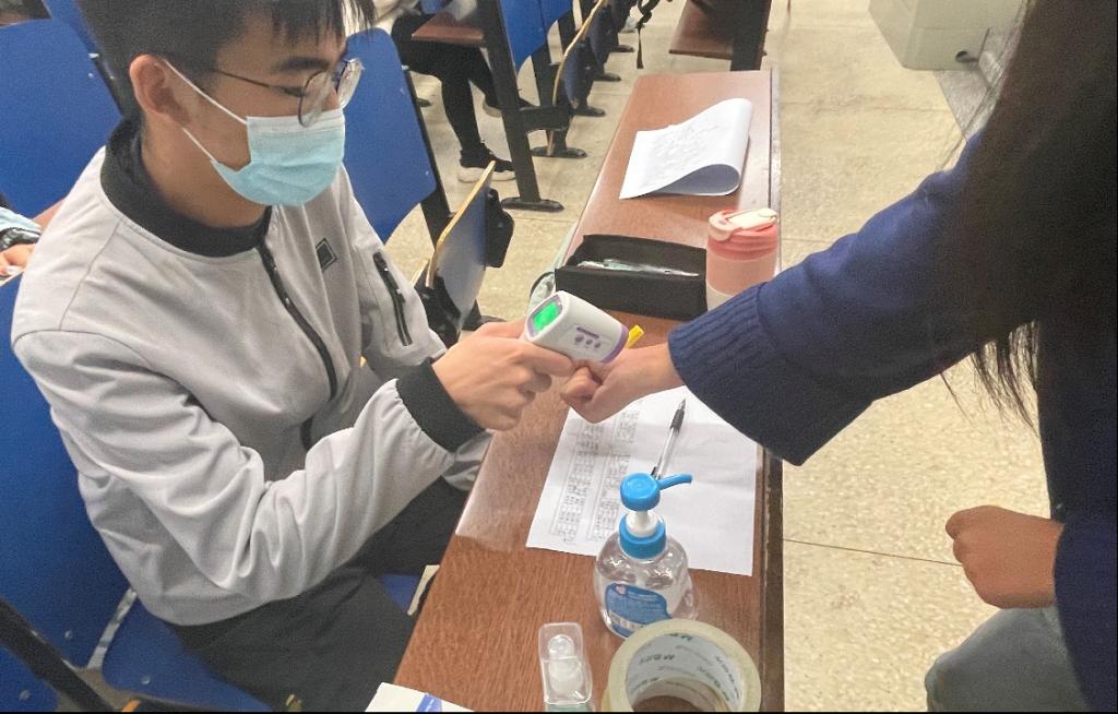 此次在竞赛过程中,仍实行严格的防疫措施。进入场地的工作人员和参赛人员均需佩戴口罩,进行测温、消毒。首先,由监考人员宣布考场规则,查验参考人员身份。晚上七点,比赛正式开始。考场气氛严肃,选手奋笔疾书,监考人员在考场内巡视,监察考场纪律,维护考场秩序,保证竞赛公平。