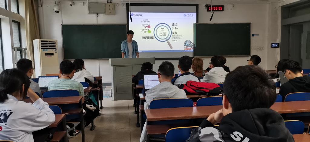 上午10点,讲座正式开始。本次讲座分为生涯规划,如何学好课程,竞赛、项目、科研,四六级备考,丰富大学生活五个部分。在第一部分中,杨逸飞同学分别介绍了保研、考研、出国、就业四类大家本科毕业后的最可能去向。让有不同大学规划目标的同学们都能知道自己努力的方向。第二部分中,针对一些大学生认为大学学习只要考前突击的错误观念,杨逸飞同学进行了驳斥。他强调日常积累是取得好成绩最切实可行的方法,并希望同学们能养成良好的时间管理观念,将每天的课程任务有条不紊地做好计划并实现。第三部分,杨逸飞同学分析了竞赛、项目、科研这三种课外研学的门槛和好处,让同学们权衡。关于四六级备考,杨逸飞同学建议大家从单词入手,认真做题,熟悉套路。最后,杨逸飞同学展示了黄漫