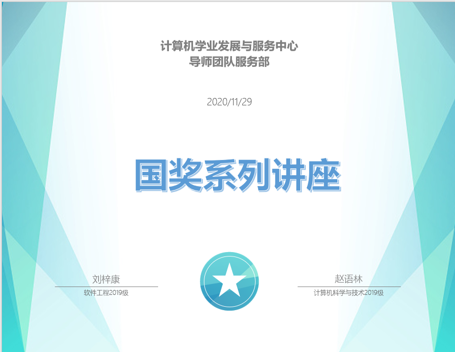 下午四点,国奖系列讲座正式开始。朋辈导师刘梓康首先对国家奖学金进行了概述。简言之,国家奖学金是国家为了激励高等学校的学生勤奋学习,德智体美劳全面发展而设置的。国家奖学金对日后的保研、工作有很大的帮助。同时,刘梓康学长指出,奖学金不是目的,而应是同学们努力的方向,更重要的还是在大学四年中能真正学到知识、技能。紧接着,学长从如何提高学习效率、具体学科学习经验、未来发展方向三个方面同20级新生交流自己的体会、给出自己的建议。