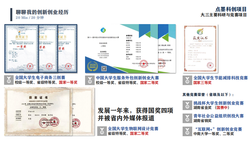 上午10点,创新创业辅导课正式开讲。孙家正学长首先聊了聊自己的创新经历。孙家正学长获得了多项奖项,拿到两个大厂的sp offer,保研到了北京理工大学,但是没有骄傲、自豪,他对自己创业的感受却是劫后余生的累。学长指出,除非真的热爱创新创业,否则能不搞就不搞创新创业,而且要有血本无归的打算。接着学长介绍了自己创办的Oriole工作室,以及丰厚的创新创业成果。