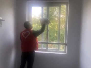 下午两点,志愿者们身穿红马甲,来到升华学生公寓28栋。青志协分配好清扫任务后,志愿者们利用清洁工具开始秩序井然的卫生清理工作。志愿者们齐心协力,细致地清扫了楼梯上的塑料袋及纸团,耐心地用干湿抹布反复擦拭了各楼层两侧的玻璃,清理了遗留在各楼层楼道的垃圾袋……