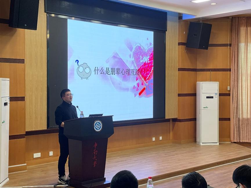 而后,许宁老师向大家讲解了什么是朋辈心理互助,阐述了朋辈心理互助者作为宣传员、信息员、倾听员和警报员的作用,点明了“向知心朋友诉说”是继自我调节之后最常见的求助方式。在此过程中,许宁老师向大家介绍了心理健康的经典标准,进而说明了哪些同学需要心理帮助,如具有情绪低落、情绪突然异常、社会支持长期缺乏或丧失等特质的人。