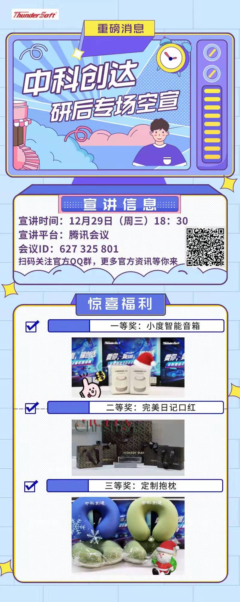 【中科创达 】22届招聘宣讲会火爆来袭(A股600亿上市公司)——研后专场