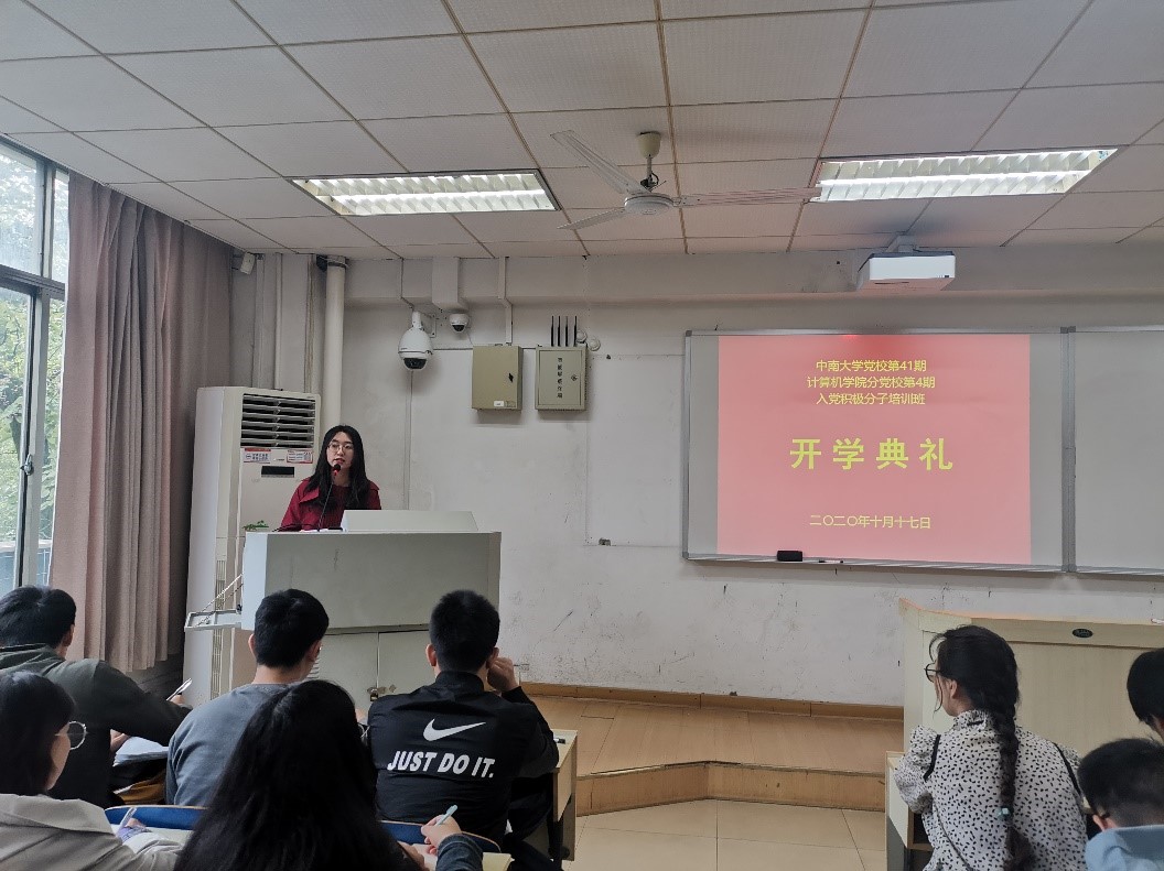 积极分子培训班的开设情况。接着,李老师从具体的文件条例出发向同学们条理清晰地说明了本学期培训班开课学时和评分细则。她严肃明确地强调了党课的严明纪律,进而表达了对大家能够严格要求自己,完成努力向党组织靠拢使命的殷切期望。
