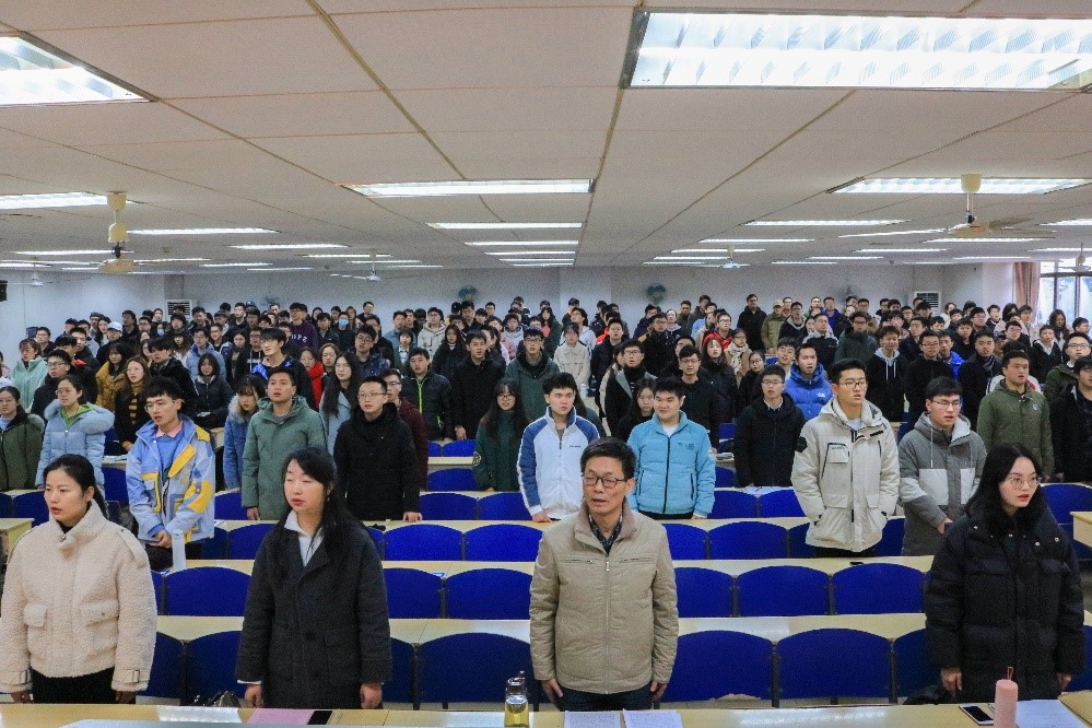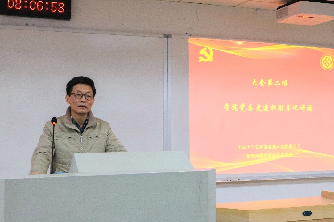 典礼第二项,由学院党委史建权副书记发表讲话。史书记首先带领大家回顾了近百年来无数革命同志,共产党员为党为国为为人民奉献牺牲的历史。他希望与会积极分子和发展对象能够通过对党的学习变得讲政治有信念,能够不负青春不负韶华,能在不远的将来担当起历史的重任,为十四五建设贡献出自己的一份力量。史书记对全体与会同学提出了加强学习,多做贡献,提升能力的要求,从点滴做起,加强党性与道德修养,做讲道德有品德的社会主义新青年。