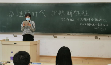 计算机院第十五期发展对象第五组在学校科教北楼302教室开展了小组研讨交流活动。党的二十大在昨日胜利闭幕,所以小组讨论的主题为:“奋进新时代,护航新征程”,就学习党的二十大精神这一主题进行研讨。第五组全体同学参加了活动。活动由组长史玮璇同学主持。