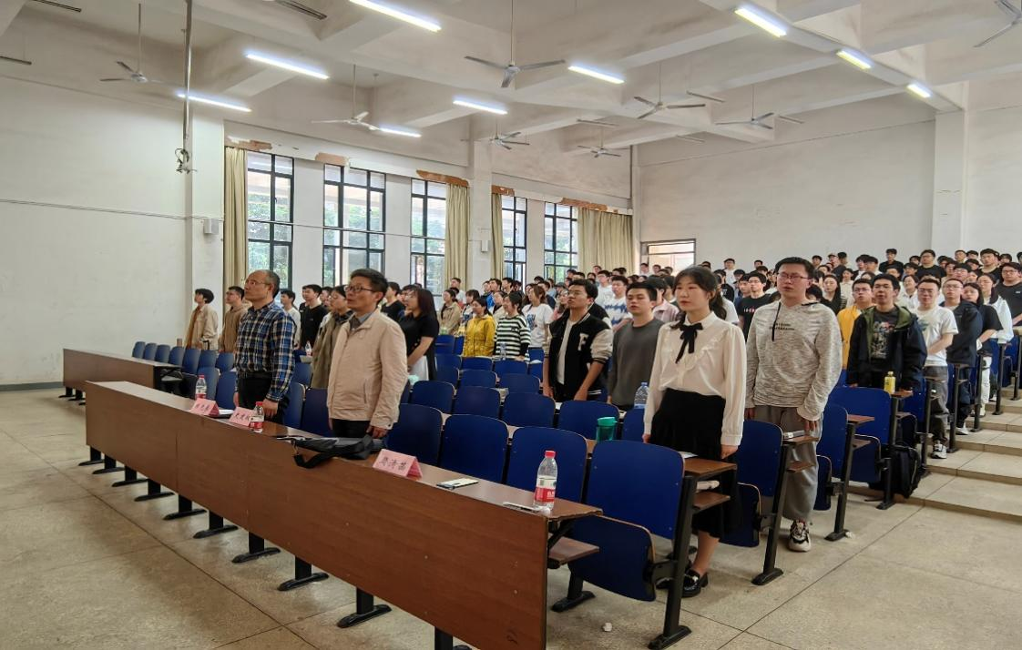 下午两时,开班典礼在慷慨激昂的国歌声中拉开帷幕,全体师生起立共唱中华人民共和国国歌。
