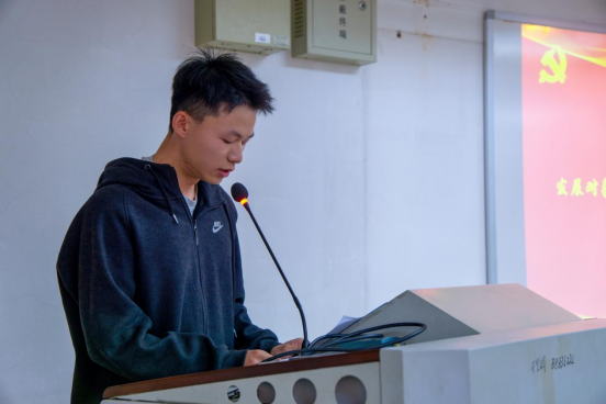 大会第三项议程,发展对象培训班学员代表蔡昌麟发言。他呼吁每一位学员要做到以下三点:一、提高政治觉悟,对党的性质,基本理论等要有较深的理解;二、端正入党动机,在组织上入党是一时的,在思想上入党是永久的;三、要将对思想上的高度要求落实到行动上,在实践中砥砺品格,增长才干。